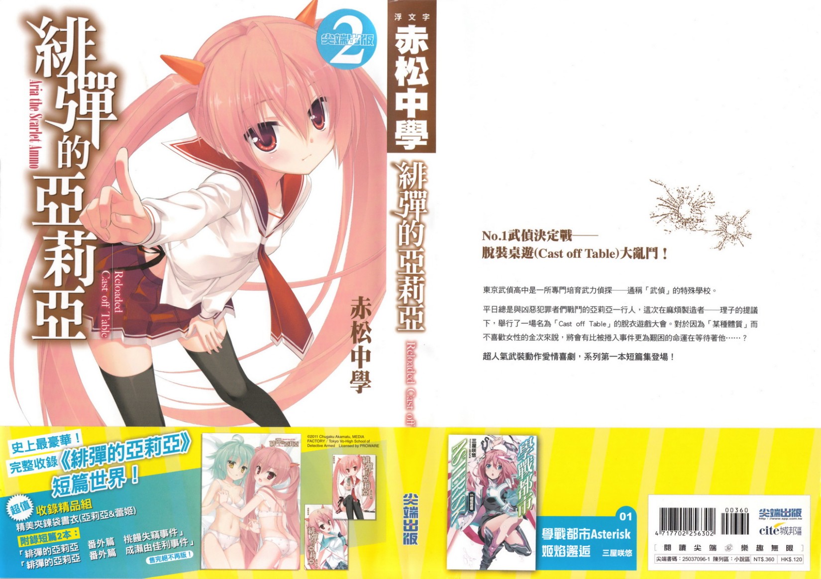 作者:赤松中学 插画:こぶいち 图源:任雷劈 录入:任雷劈 初校:任雷劈 修图:工口姐姐 epub制作:(贴吧)煌之虹奈 轻之国度:http://www.lightnovel.cn 仅供个人学习交流使用,禁作商业用途 下载后请在24小时内删除,轻之国度不负担任何责任 请尊重翻译、扫图、录入、校对的辛勤劳动,转载请保留信息 内容简介 No.1武侦决定战—— 脱装桌游(Cast off Table)大乱斗! 东京武侦高中是一所专门培育武力侦探——通称「武侦」的特殊学校。 平日总是与凶恶犯罪者们战斗的亚莉亚一行人,这次在麻烦制造者——理子的提议下,举行了一场名为「Cast off Table」的脱衣游戏大会。对于因为「某种体质」而不喜欢女性的金次来说,将会有比被卷入事件更为艰困的命运在等待着他……? 超人气武装动作爱情喜剧,系列第一本短篇集登场! 作者 赤松中学 Chugaku Akamatsu 出生年月日、年龄、出身地、住所一切不明的蒙面作家。以SF冒险小说《宙士诺德!》一书,获得第3届MF文库J轻小说新人奖优秀奖。《绯弹的亚莉亚》是该作家的第二部系列作品。 こぶいち Kobuichi 隶属Yuzu-Soft的原画作家。 代表作有「ぶらばん!」「EXE」「夏空カナタ」「天神烂漫」。小说方面,还担任了《这样算是僵尸吗?》的插画工作。 兴趣是游戏和读书。 目前热衷于手机游戏。